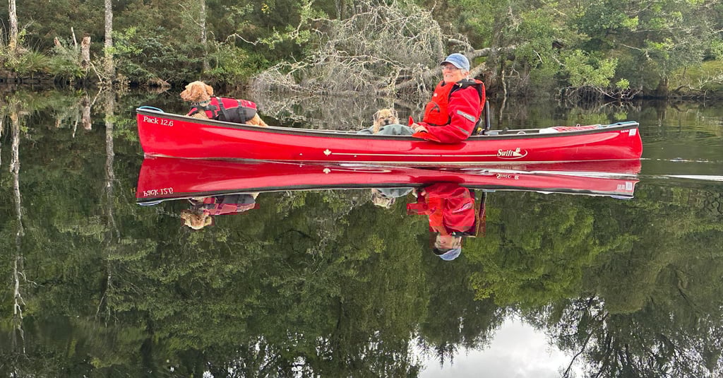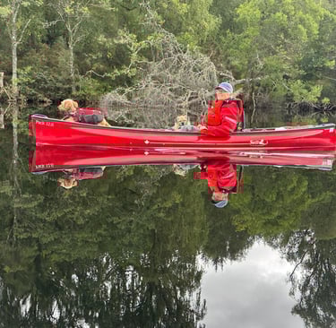 The following day was the best – no wind, sunshine and more forest, gentle hills covered in brown ferns and a safe landing at Fort Augustus. A friendly taxi driver who took us back to our cars and a hearty meal at the campsite café. That night, as I settled into my warm micro cabin, I thought how much I had enjoyed our adventure and I had an epiphany, Was I living or was I dying? Both, I decided. We are always both.